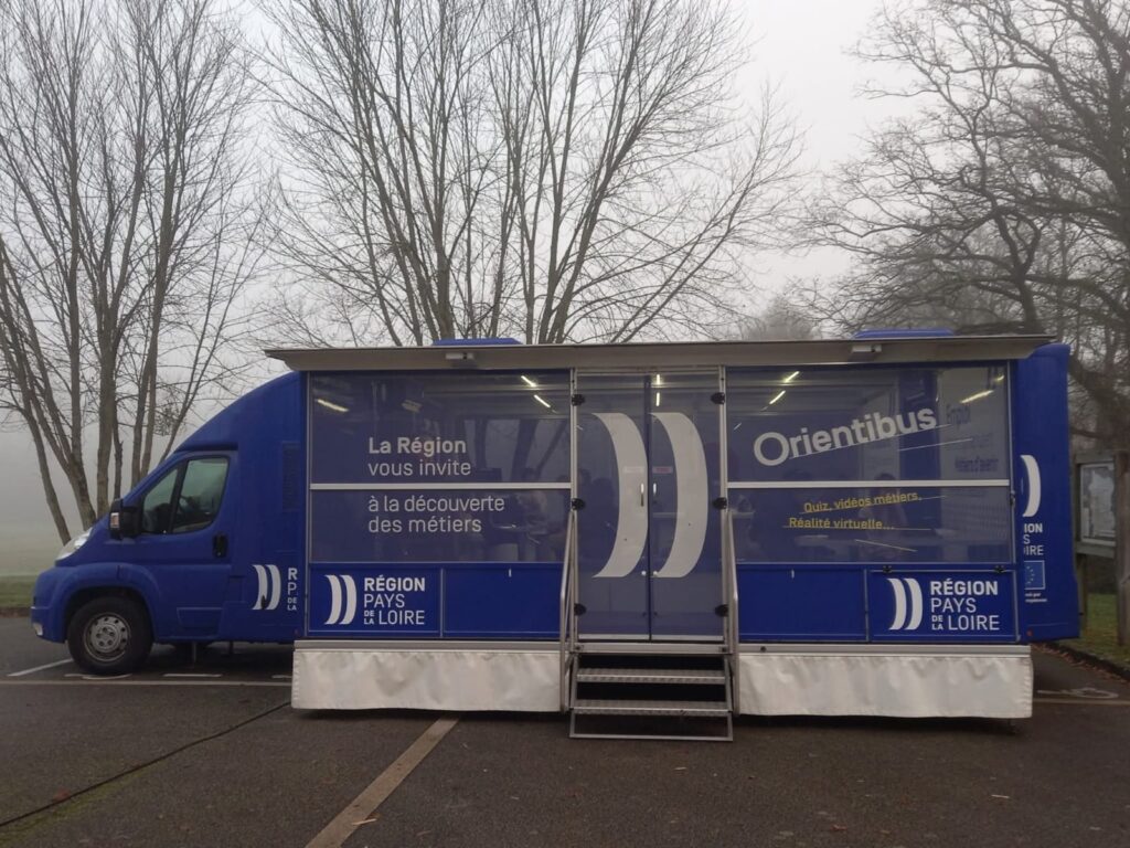 Ce matin, la salle de la Riante Vallée s’éveille dans le brouillard. Peu à peu arrivent les élèves de 3ème du collège Saint Augustin venus rencontrer les intervenants de plusieurs établissements d’enseignement général et technologique, professionnel, de MFR et de CFA. Sur le parking, un atelier dans l’Orientibus venu tout spécialement pour eux. Dans la salle, un atelier avec les casques de réalité virtuelle prêtés par la COMPA.
